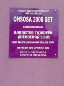 Odo-Obara Junior and Senior High School, Epe Lagos state, received a major boost as Old Students from different graduating sets came together to donate educational materials and unveil a new school gate with two solar-powered streetlights.