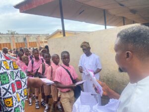 The Junior School Principal commended the 2001 set for their promise to return and supply exercise books to the incoming JSS 1 students.