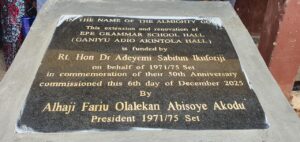 Epe Grammar School, the pride of Epe’s educational landscape, came alive over the weekend as the 1971/1975 Set marked its Golden Jubilee with a blend of nostalgia, philanthropy and renewed commitment to future generations. The celebration reached its peak with the commissioning of a newly completed school hall extension and the presentation of educational resources donated by the jubilant set.